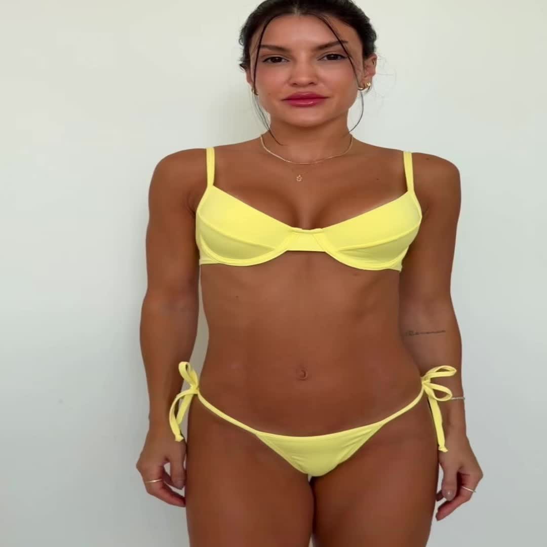 nas fotos a modelo Nágela veste top M e calcinha P