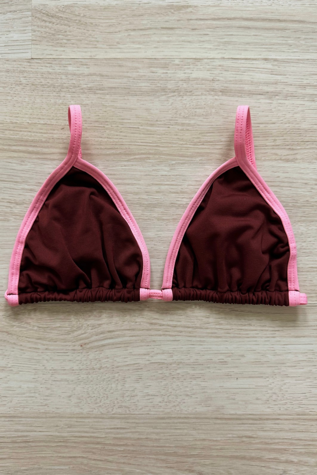 • costura com viés aparente — inclusive nas alças
